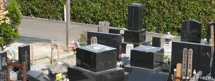 地震は突然起こります。そして大切なものを壊してしまいます。大切なお墓が壊れてしまう前に墓石専用免震パット「絆】施工をお勧めします。