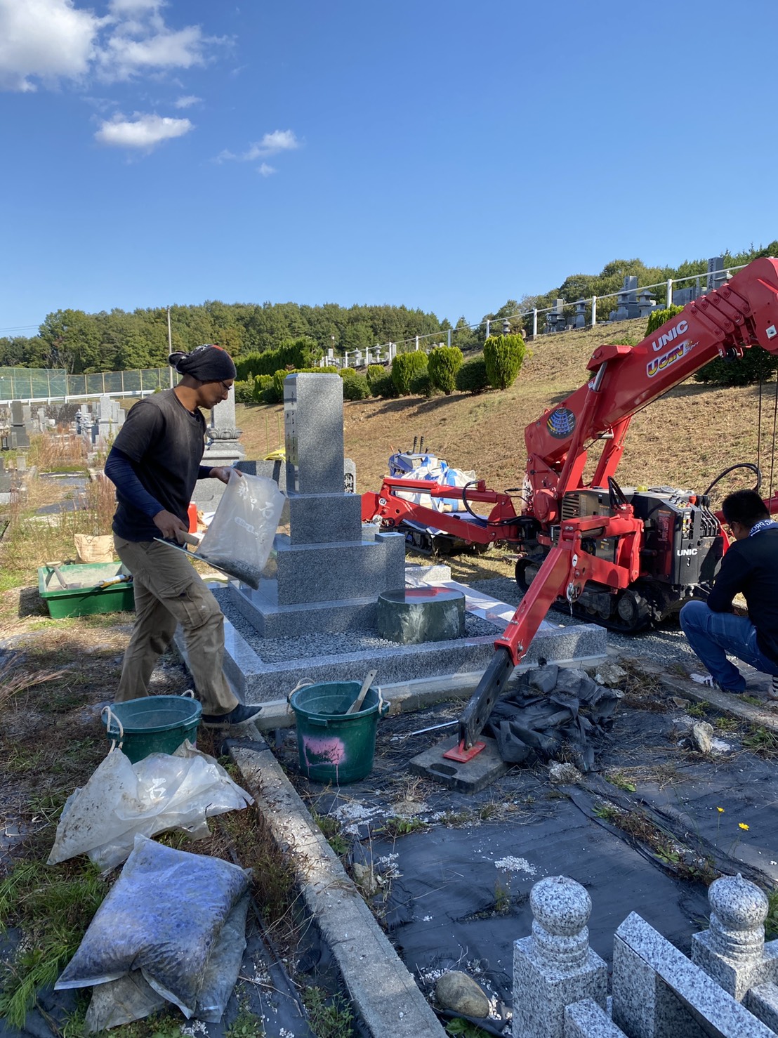 新しいお墓の施工の様子です。2箇所の施工の写真を使用しています。